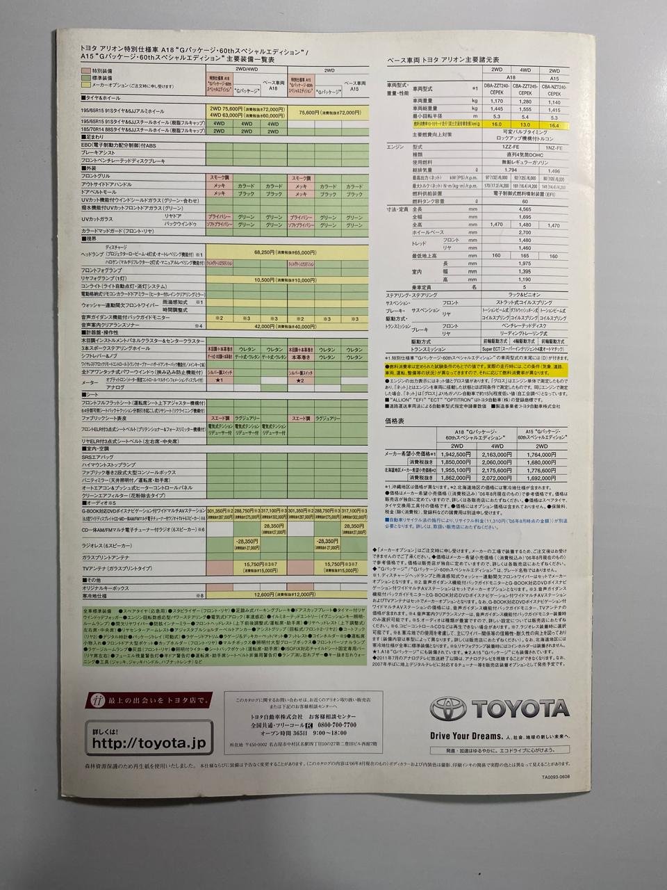The Toyota Allion is a popular mid-size sedan from Toyota’s early 2000s lineup. Original Japanese catalogs like this are becoming harder to find, making this a valuable piece of authentic Toyota literature for enthusiasts and collectors.